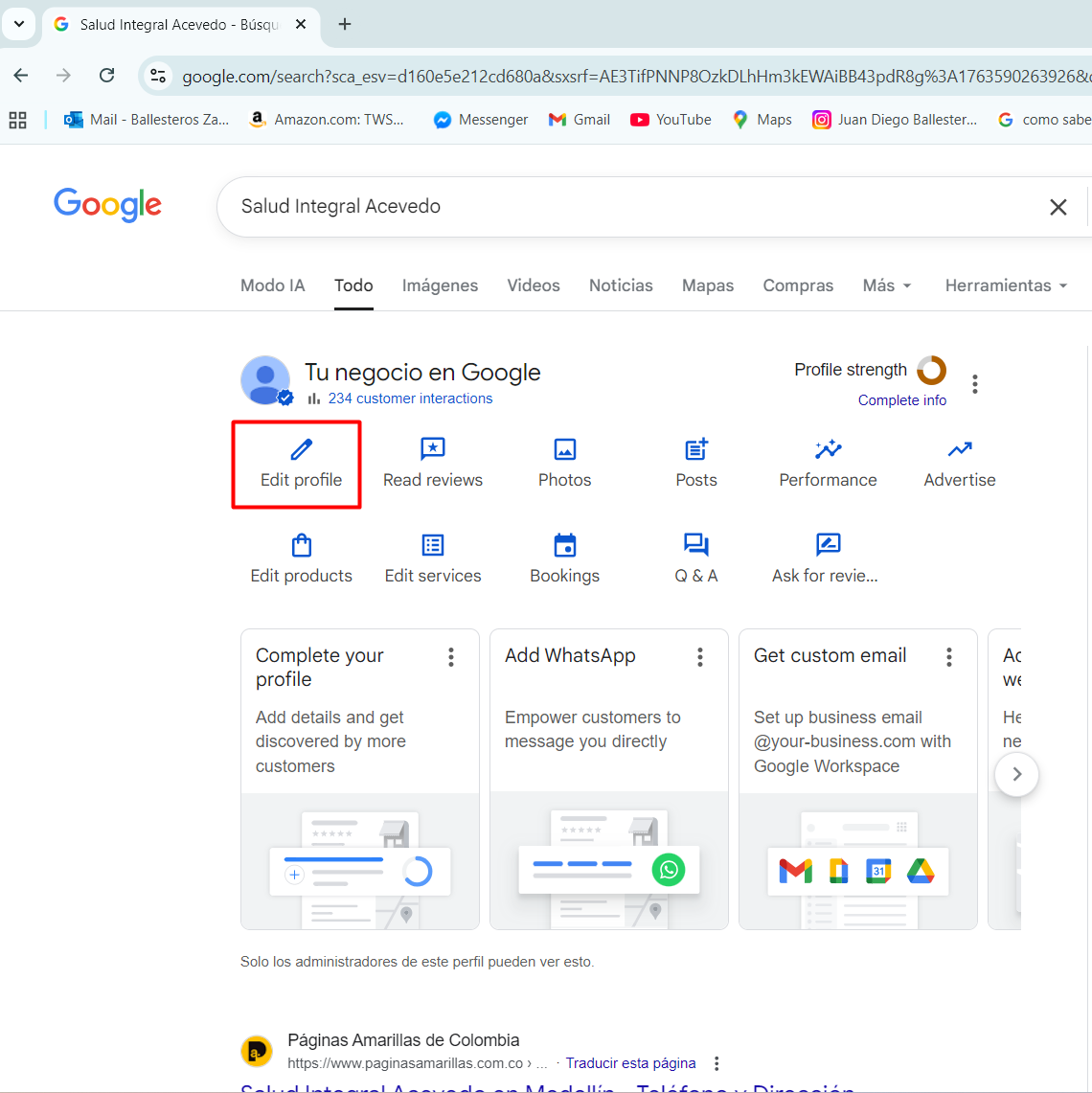 Primero, asegúrate de haber iniciado sesión en Google con la cuenta que tiene acceso administrativo a tu negocio en Google My Business.