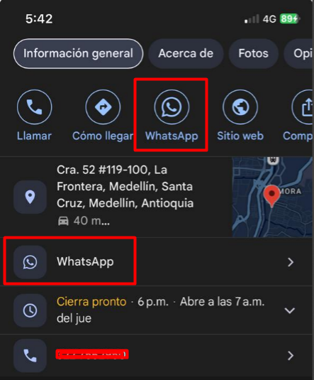 Tras la descontinuación de Google Business Messages, las empresas ahora pueden integrar su número de WhatsApp directamente en su perfil de Google My Business. Esta integración permite que los clientes se comuniquen contigo por WhatsApp directamente desde tu ficha de Google en dispositivos móviles.